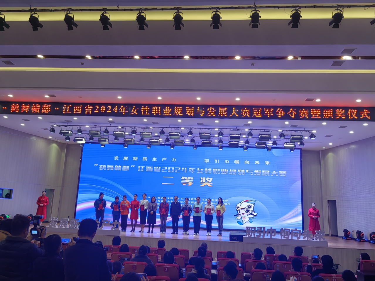 发展新质生产力,职引巾帼向未来。11月24日,“鹤舞赣鄱”江西省2024年女性职业规划与发展大赛冠军争夺赛暨颁奖仪式在我校举行。省政府副省长张莹、省妇联主席钱昀、省政府办公厅副主任谢达贵、省教育厅二级巡视员杨春年、省科技厅二级巡视员幸红星、省工信厅二级巡视员杨金娥、省人社厅二级巡视员项叶萍、省妇联副主席刘丽、beats365亚洲版院长廖国琼出席并颁奖。