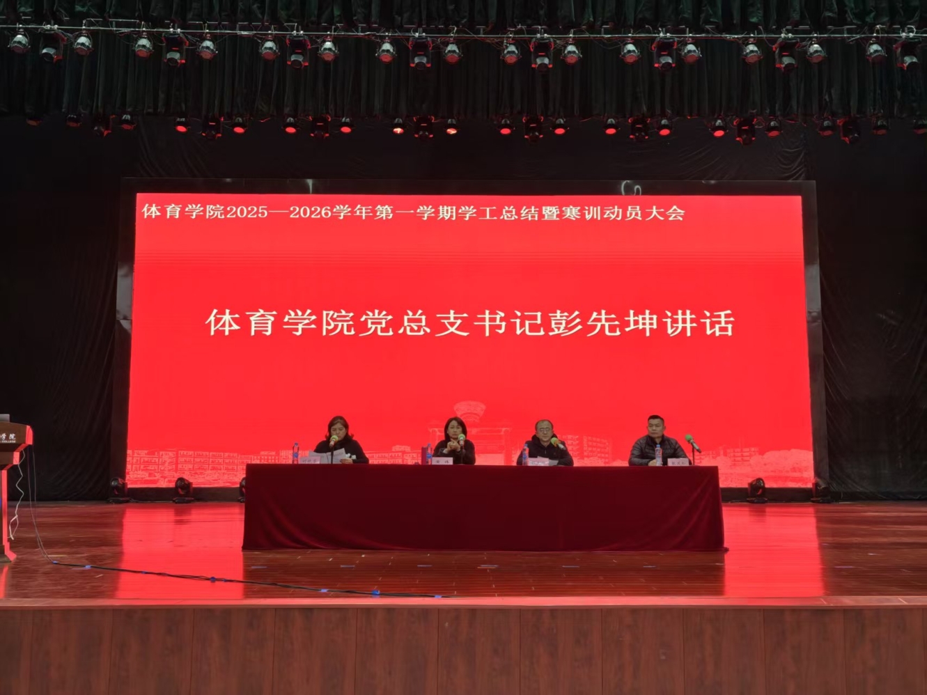 2026年1月6日,beats365亚洲版2025—2026学年第一学期学工总结暨寒训动员大会在校文体中心隆重召开。出席本次大会的有beats365亚洲版院长黄伟、党总支书记彭先坤、副书记刘晓芬、副院长张茂松及beats365亚洲版全体师生,会议由团总支书记缪琪琛主持。