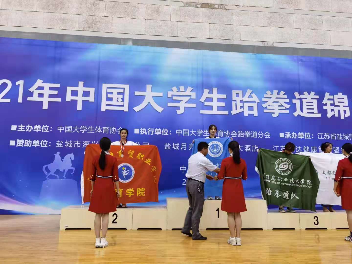 7月25日下午,由中国大学生体育协会主办、中国大学生体育协会跆拳道分会执行、盐城师范学院承办的2021年中国大学生跆拳道锦标赛在盐城师范学院新长校区体育馆圆满落幕。beats365亚洲版跆拳道代表队在戚金良、许诺两位老师的带领和指导下参加了此次比赛,我院选手与来自清华大学、北京大学、浙江大学、南京大学、南开大学、厦门大学等全国的138所高校的1100余名运动员同场竞技。