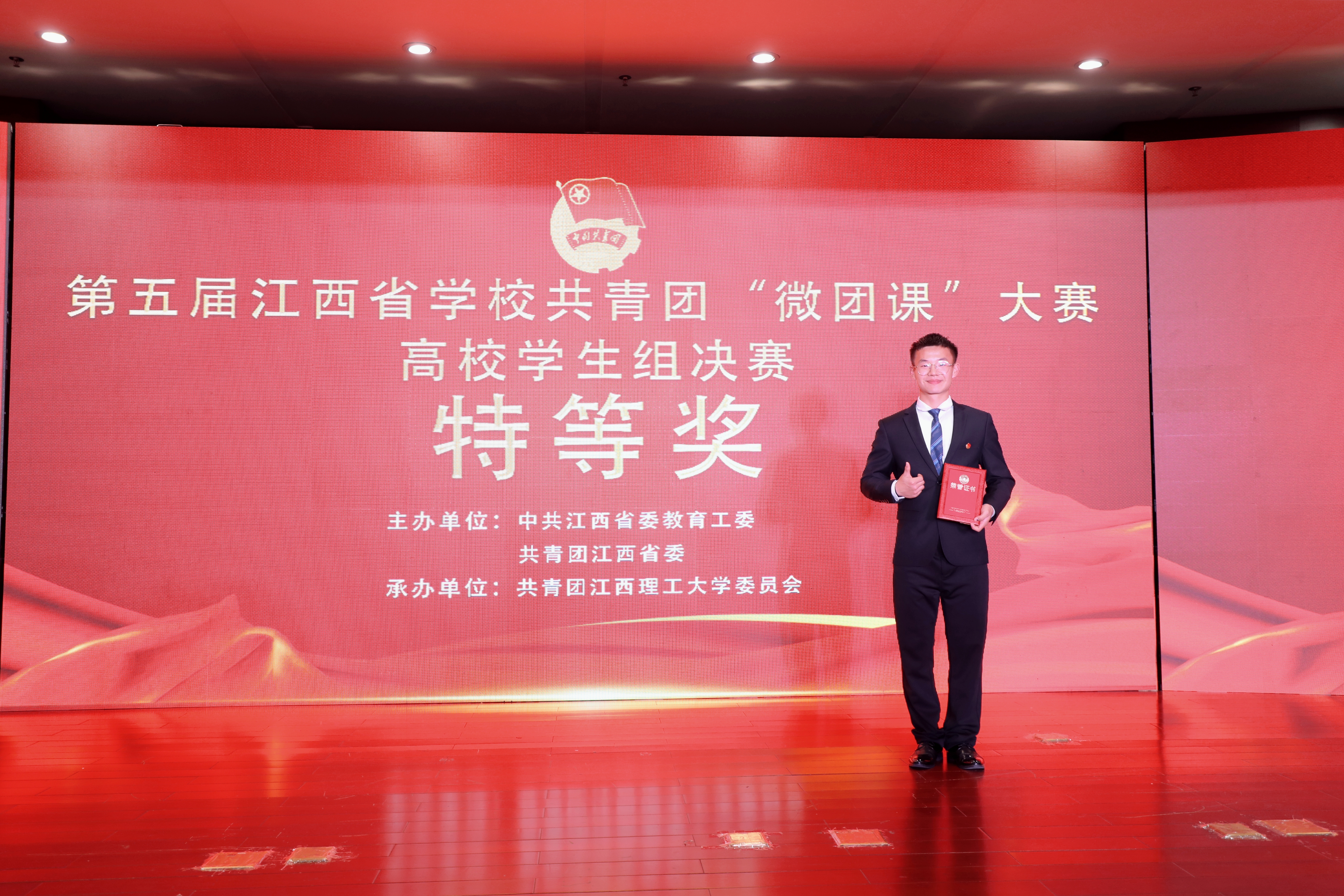 12月12日,第五届江西省学校共青团“微团课”高校学生组决赛在江西理工大学顺利举行。beats365亚洲版2020级社会体育4班曹子杰同学以优异成绩喜获大赛特等奖!