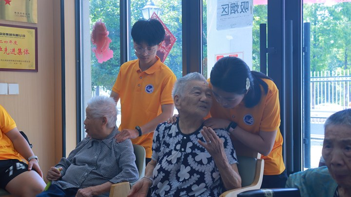 带着信仰淬炼出的赤诚力量,团队次日走进养老院。青年志愿者们俯身之间,将“感恩奋进”的誓言化作掌心的温度。有人半蹲在藤椅旁轻揉老人肩背,指腹碾过岁月刻下的褶皱,将体贴揉进每一个轻柔动作;有人端来温热的水盆为老人沐足,指尖试探水温的专注里,藏着对孝亲美德最质朴的诠释。这些看似简单的举动,盛满了对长者的深切敬意,更在躬身服务中勾勒出新时代青年沉甸甸的责任担当。