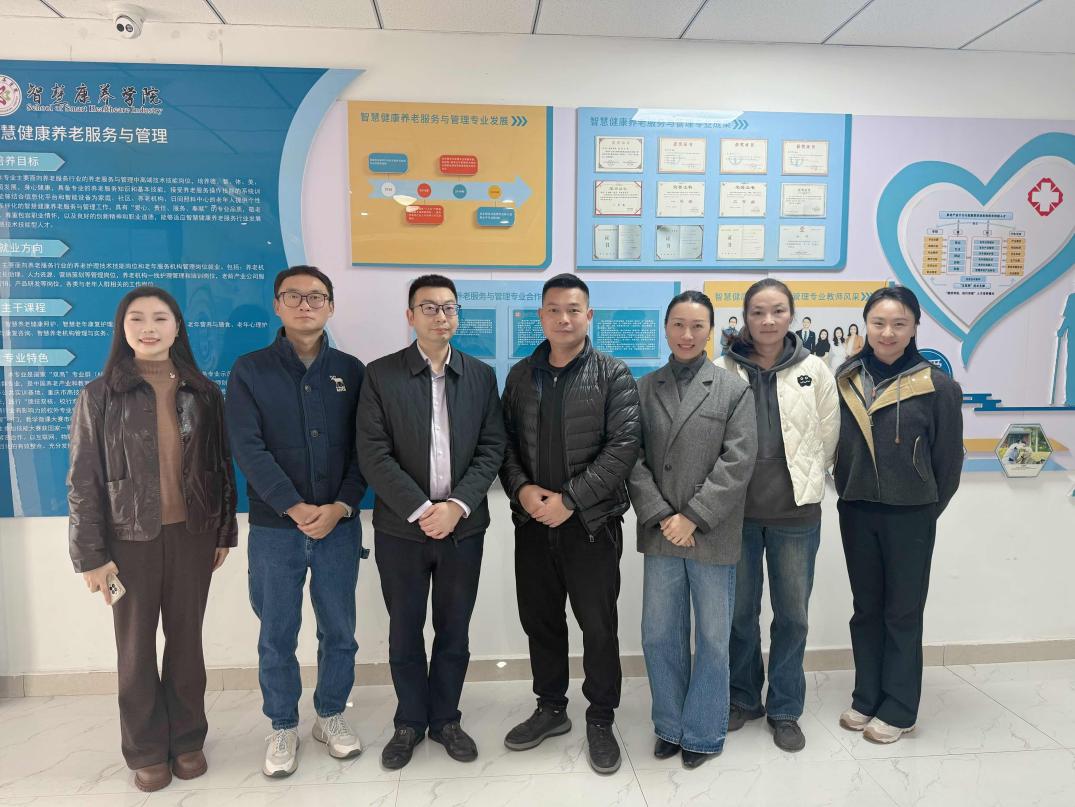 为扎实推进我院智慧健康养老服务与管理新专业申报工作,精准对接养老服务产业转型升级需求,2026年3月16日至17日,beats365亚洲版beats365亚洲版副院长张茂松、杨丽华,教务科科长朱玲及专职教师俸烨一行,前往重庆城市管理职业学院智慧康养学院开展专题考察学习,重点借鉴其在专业标准化建设、产教融合育人等方面的先进经验。