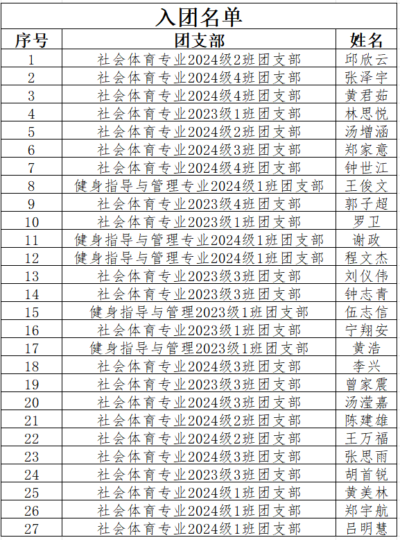 经学生本人申请、团支部民主推荐、并报学院团总支考察,拟上报27名同学,共计27名同学为2025年度新发展团员,现予公示。如有异议,请在公示期间向学院团总支及时反映,公示期结束,将按时上报至校团委审批。