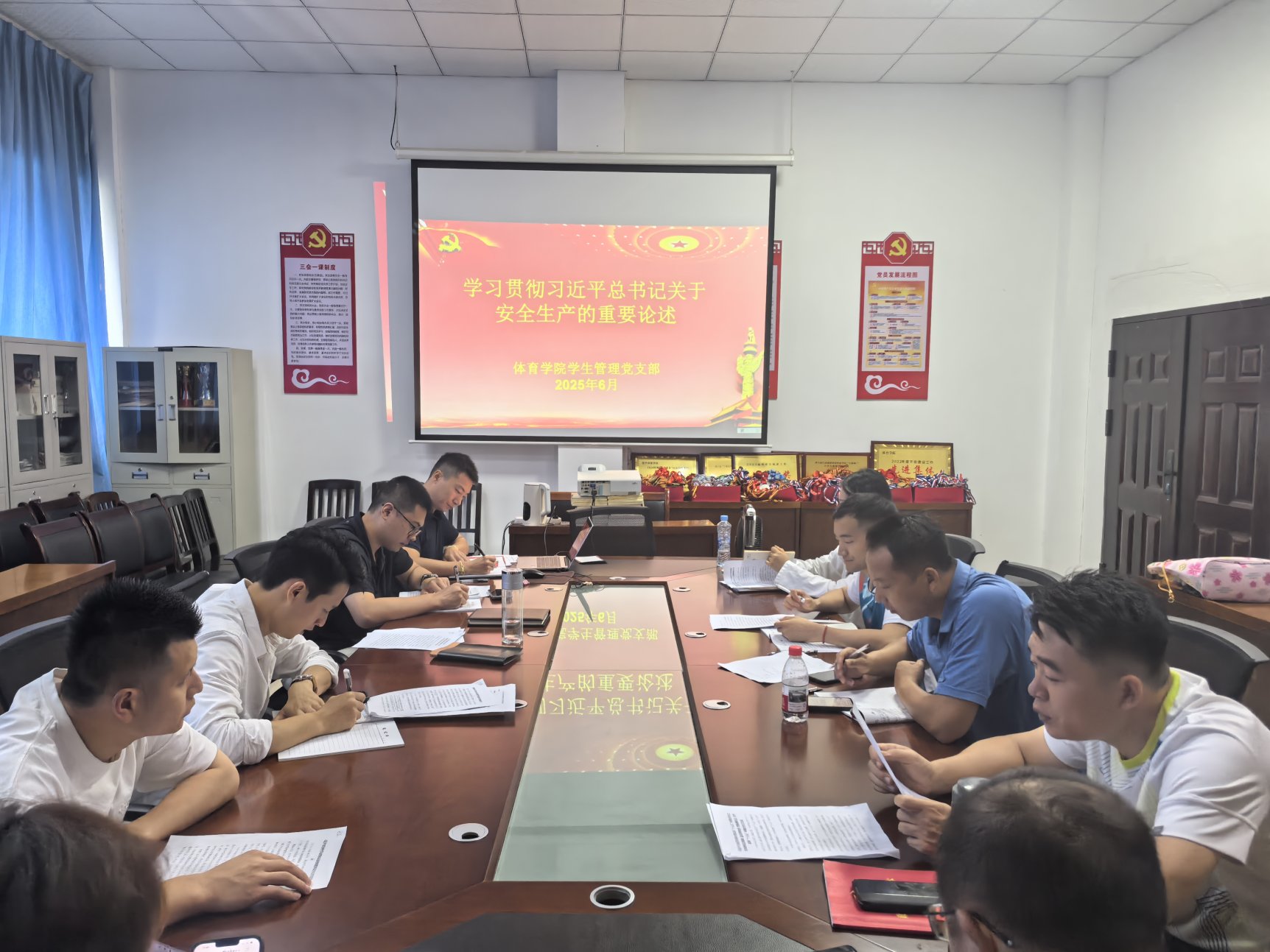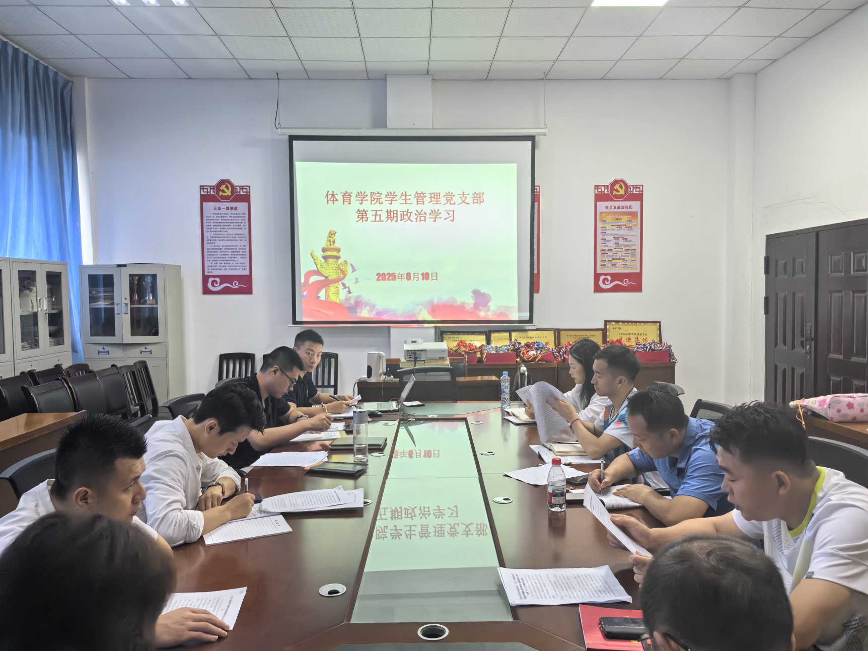 2025月6月10日,beats365亚洲版学生管理党支部于体育大楼党员活动室组织开展第五期党员政治学习,支部全体党员同志参加了本次学习。