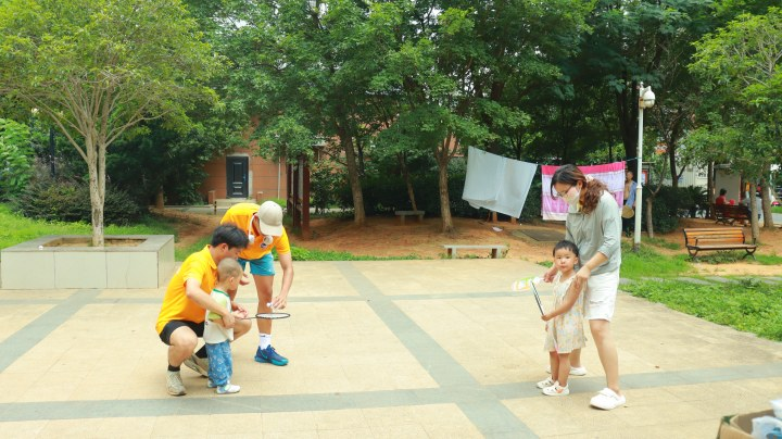 体育教学区: 志愿者化身“教练”,耐心指导孩子们羽毛球、跆拳道的基础动作与步法,孩子们在运动中活力四射。作业辅导巧妙融入体育元素,增添趣味性。