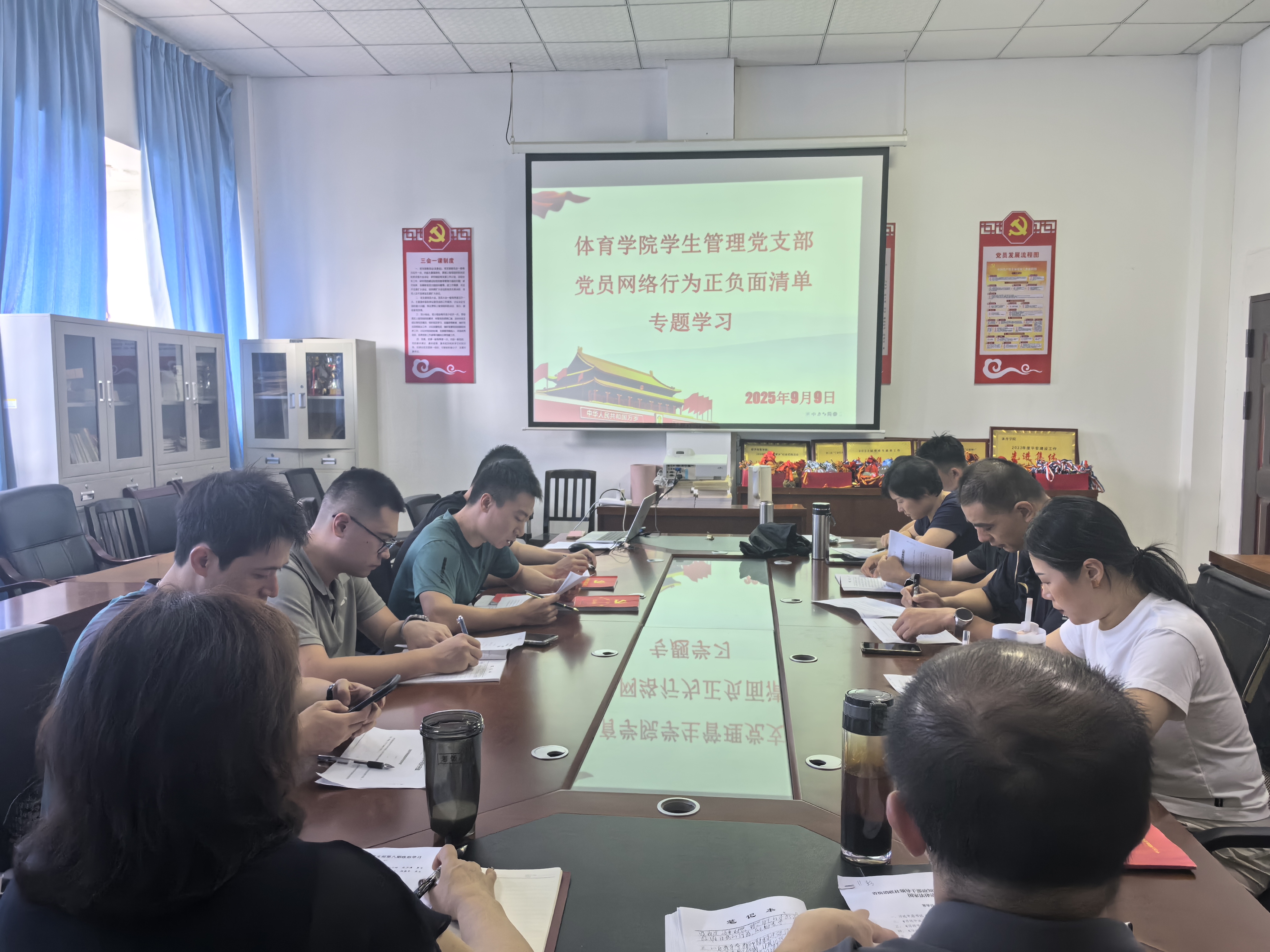 2025月9月4日,beats365亚洲版学生管理党支部于体育大楼党员活动室开展了第八期党员政治学习,支部全体党员同志参加了本次学习。