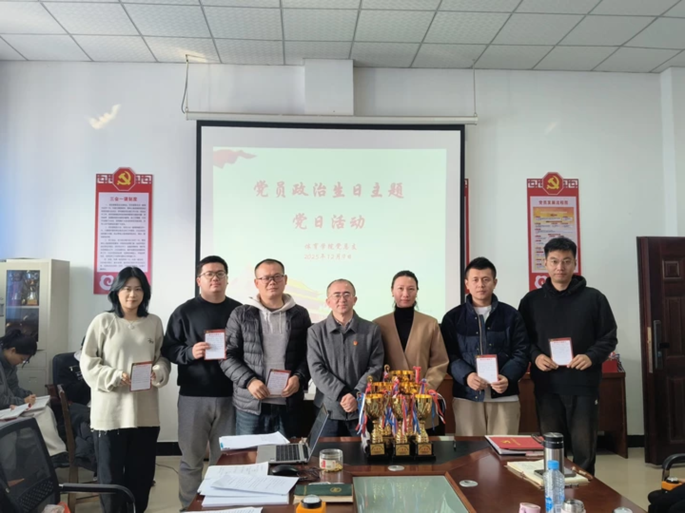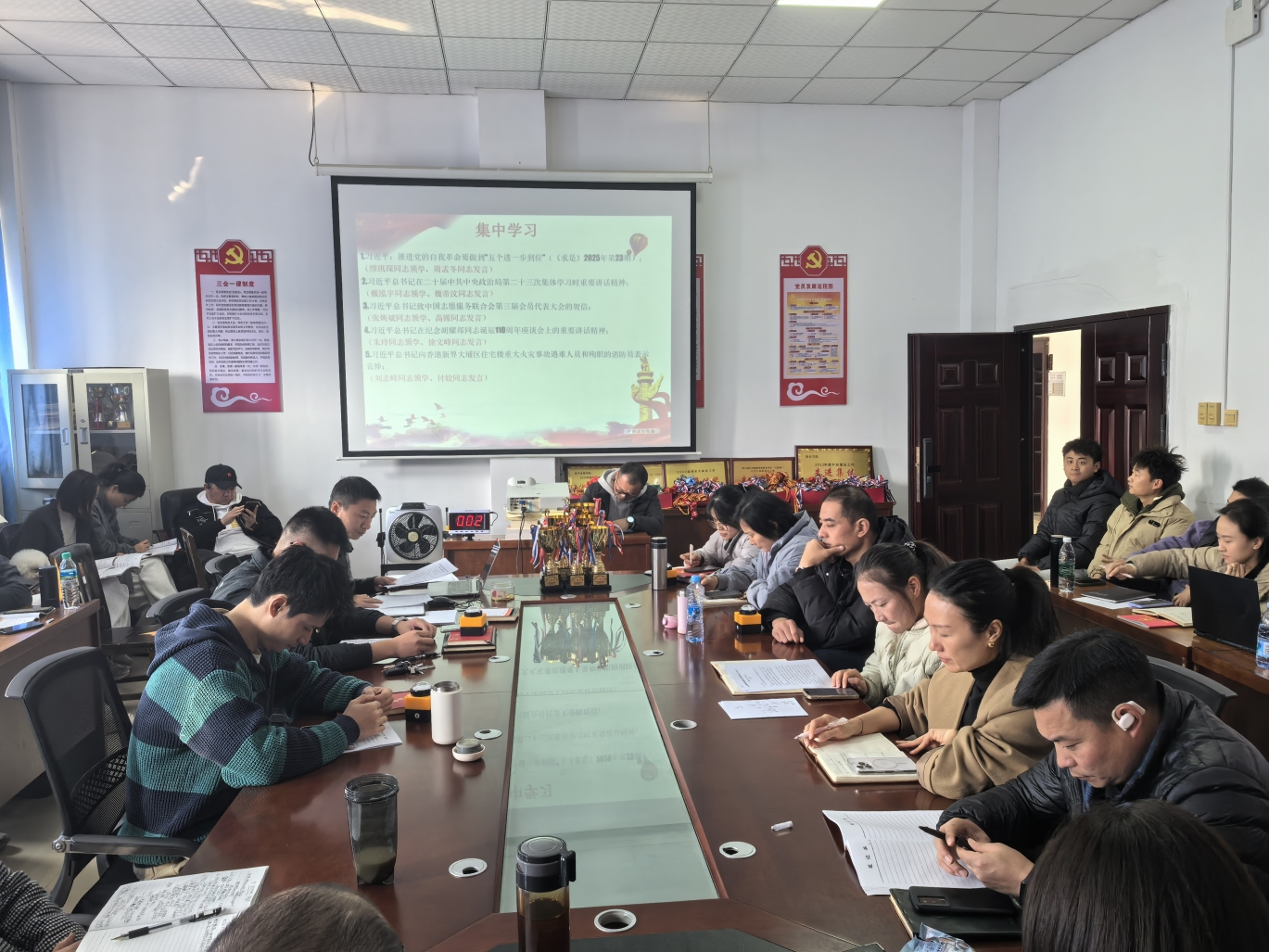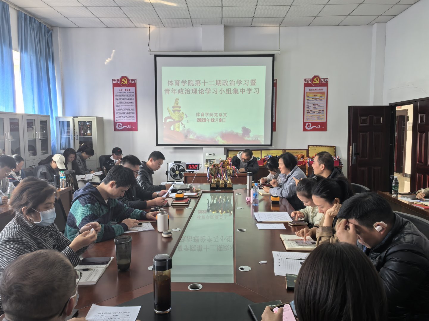 2025月12月9日上午,beats365亚洲版党总支于体育大楼党员活动室组织开展第十二期党员政治学习暨2025年度第四季度青年政治理论学习小组集中研讨,学院全体党员同志及青年教师参加了本次学习。