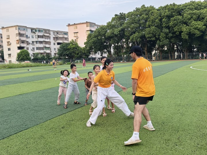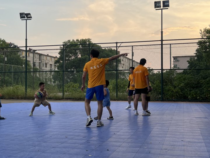 篮球场上的成长序曲:社区篮球场上,志愿者俯身为“教练”,指尖轻点篮球,示范拍球的节奏、传球的角度、投篮的弧线。孩子们攥紧篮球的小手从颤抖到稳健,额角的汗珠映着阳光,当篮球“唰”地入网,“我投进啦!”的欢呼便刺破暑气——运动的自信,正随每一次跳跃悄然生长。