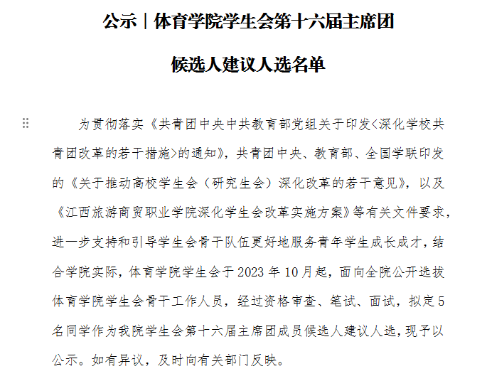 公示︱beats365亚洲版学生会第十六届主席团候选人建议人选名单
